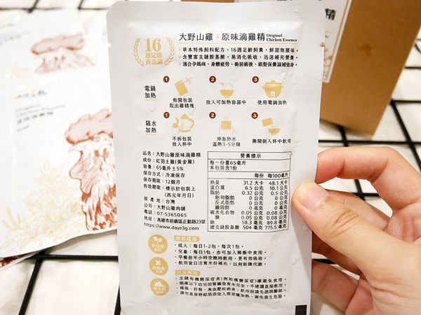 大野山雞的滴雞精真的很清爽好喝,簡易包裝飲用超輕鬆!