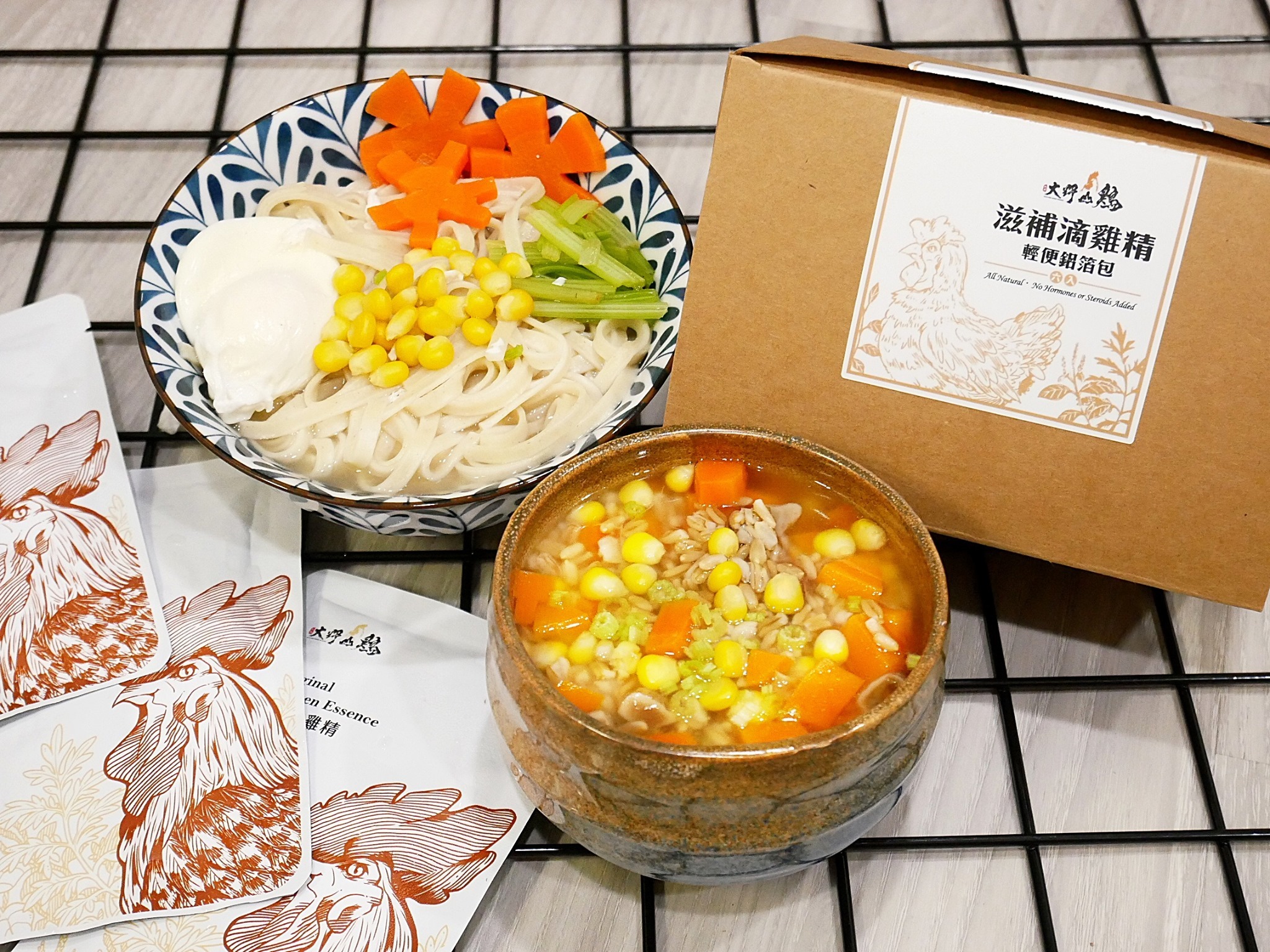 大野山雞將滴雞精設計成輕巧的鋁箔包裝,簡單隔水加熱即可飲用超方便!