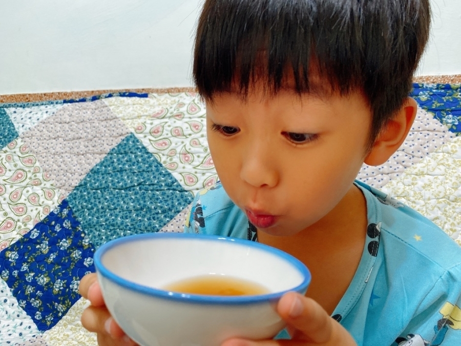 每天一早就大喊著:媽咪,快點熱雞精來喝~(笑)