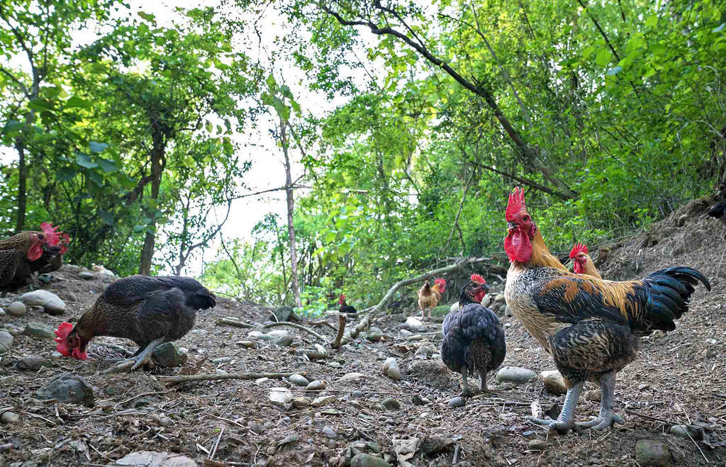 大野山雞 的牧場位於高雄杉林,四面環山的單一牧場,樹木林立環境涼爽