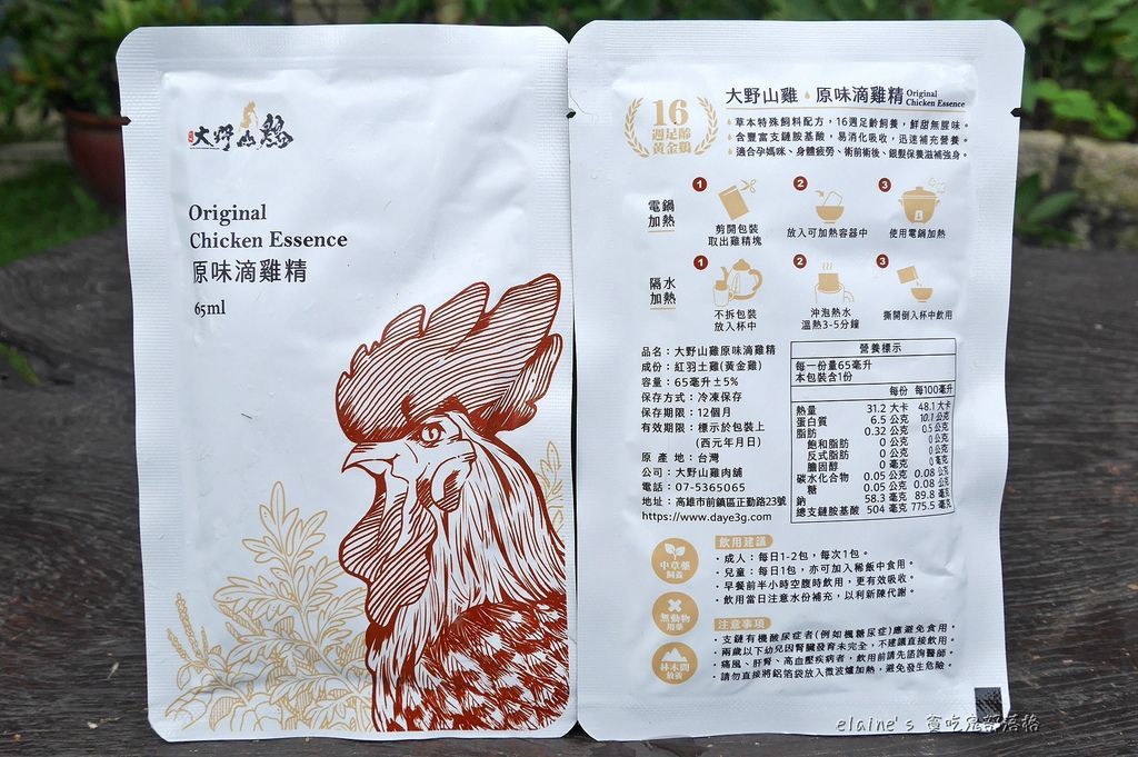 大野山雞滴雞精 鋁箔便利袋有65ml的容量,比市售滴雞精42~60ml還更大包