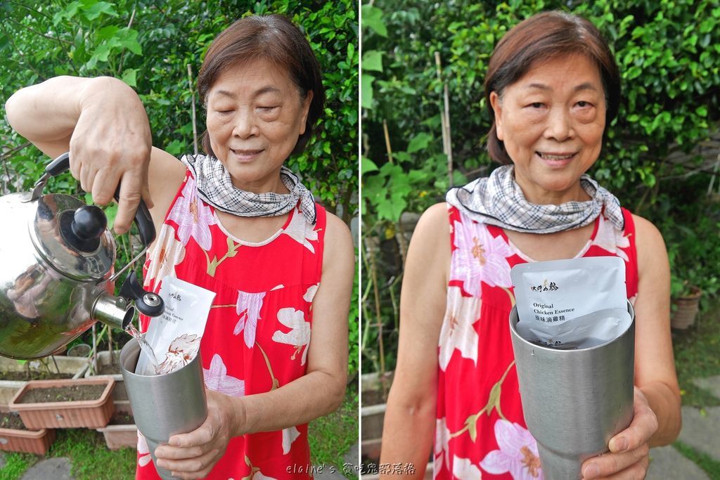 這天讓兩老先喝滴雞精後再準備早餐吃,果然精神變很好,一大早就在院子種花,下午也沒再睡午覺呢