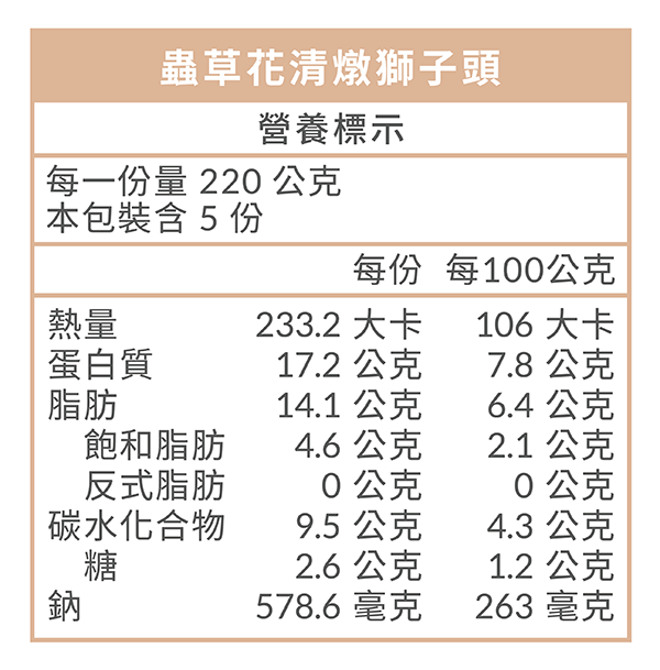 *蟲草花清燉獅子頭 4 - 5人份/件
