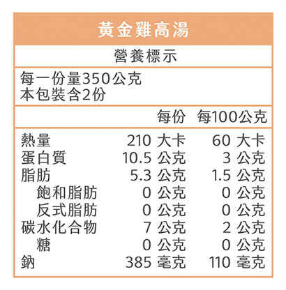 * 原味雞高湯,無添加鹽及任何調味料,適合搭配中西式料理或寶寶粥。
